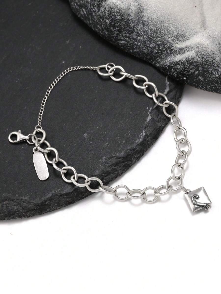1 pezzo braccialetto semplice, unico ed elegante in argento sterling 925 impreziosito da un ciondolo a forma di tocco accademico, con catena a maglie forgiate stile fai-da-te, un regalo di gioielleria fine per le donne