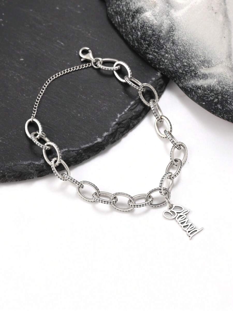 1 pezzo bracciale in elegante argento sterling 925 semplice e unico, con ciondolo pendente a stile " ", bracciale a catena forgiato fai-da-te con ciondolo, gioiello raffinato da donna, idea regalo