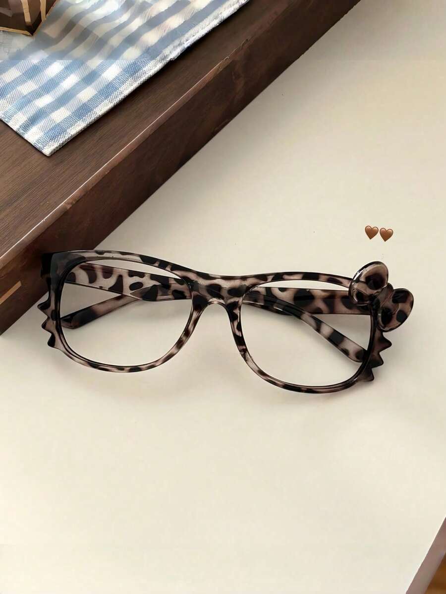 1 paio di occhiali da vista retro con fiocco e stampa leopardata, adatti per uso quotidiano, viaggi, fotografia, vacanze, cornice di occhiali adorabile, adatta come regalo di ognissanti