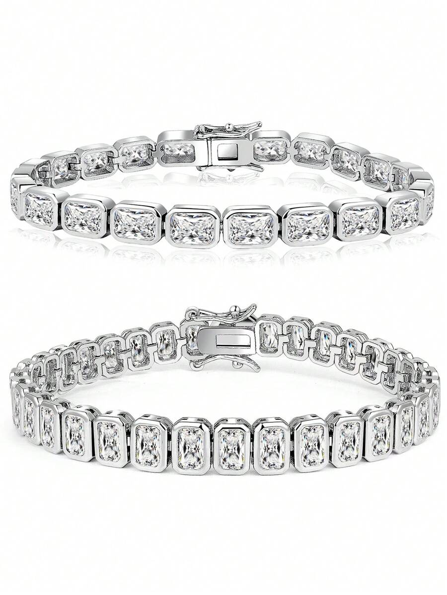 1 pezzo braccialetto casual elegante e alla moda in stile tennis in rame con pietre di zirconia cubica, adatto per feste e abbigliamento quotidiano da donna, regalo di gioielleria economico per le vacanze