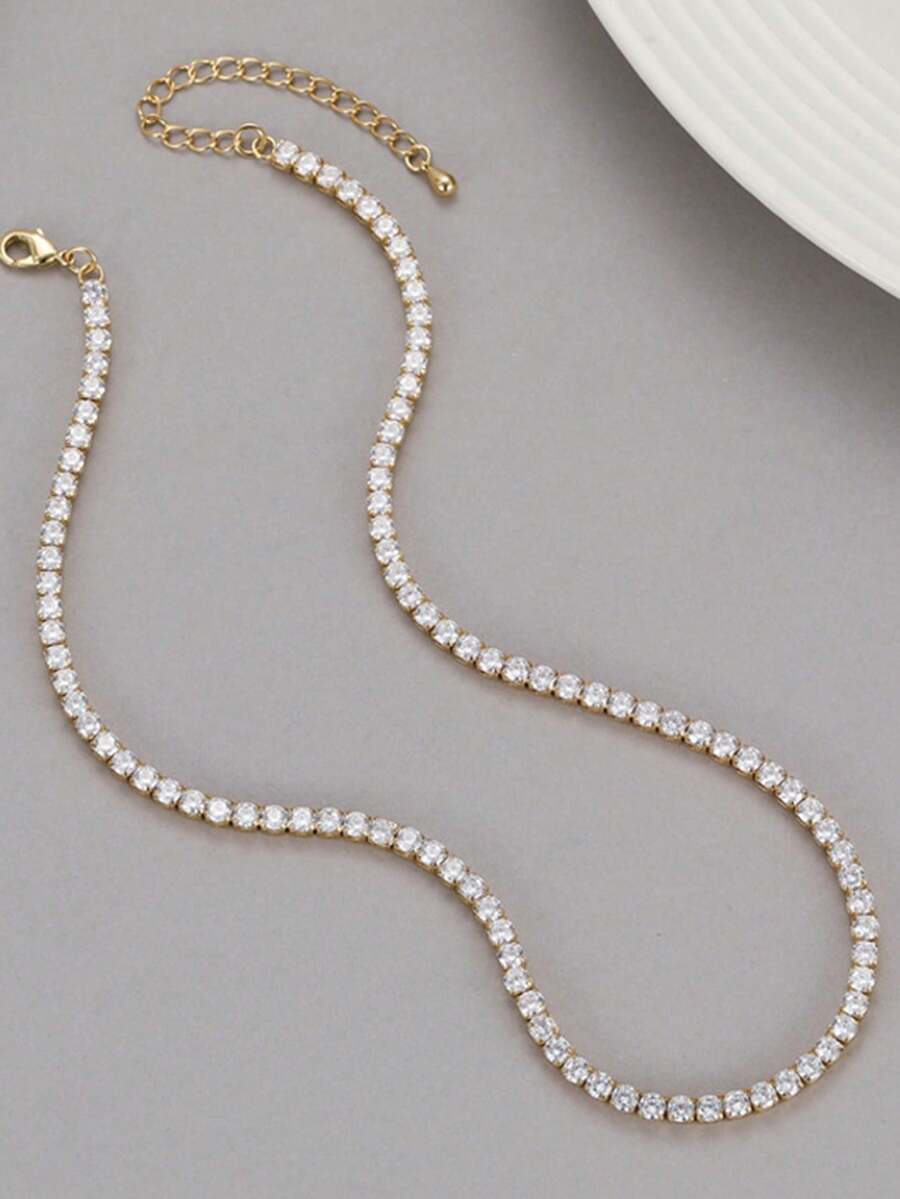 1 pezzo collana da donna in stile ins alla moda con zirconia cubica incastonata in rame, creativa, a fila singola