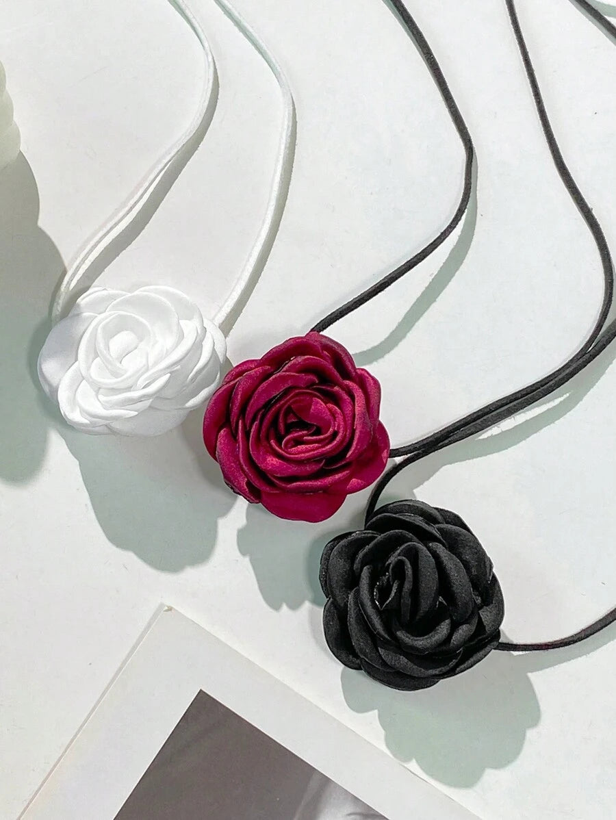3 pezzi collana vintage di nastri di seta a fiori di camelia, collana choker in raso a rosa, set di gioielli floreali moderni per feste, eleganti accessori da donna per san valentino, mamma, madre, festa della mamma, regalo