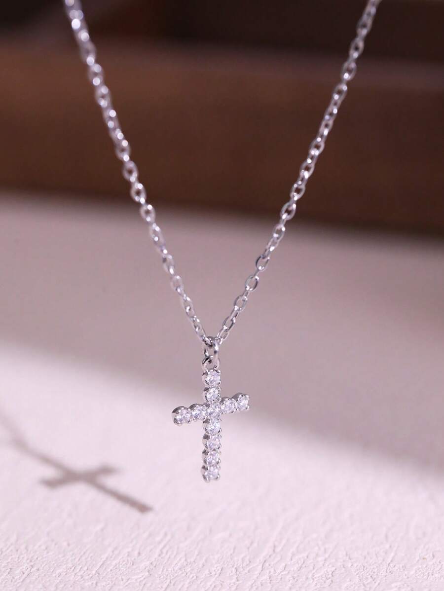 1 pezzo collana con pendente a croce in acciaio inossidabile con zirconia, adatta per l'uso quotidiano delle donne