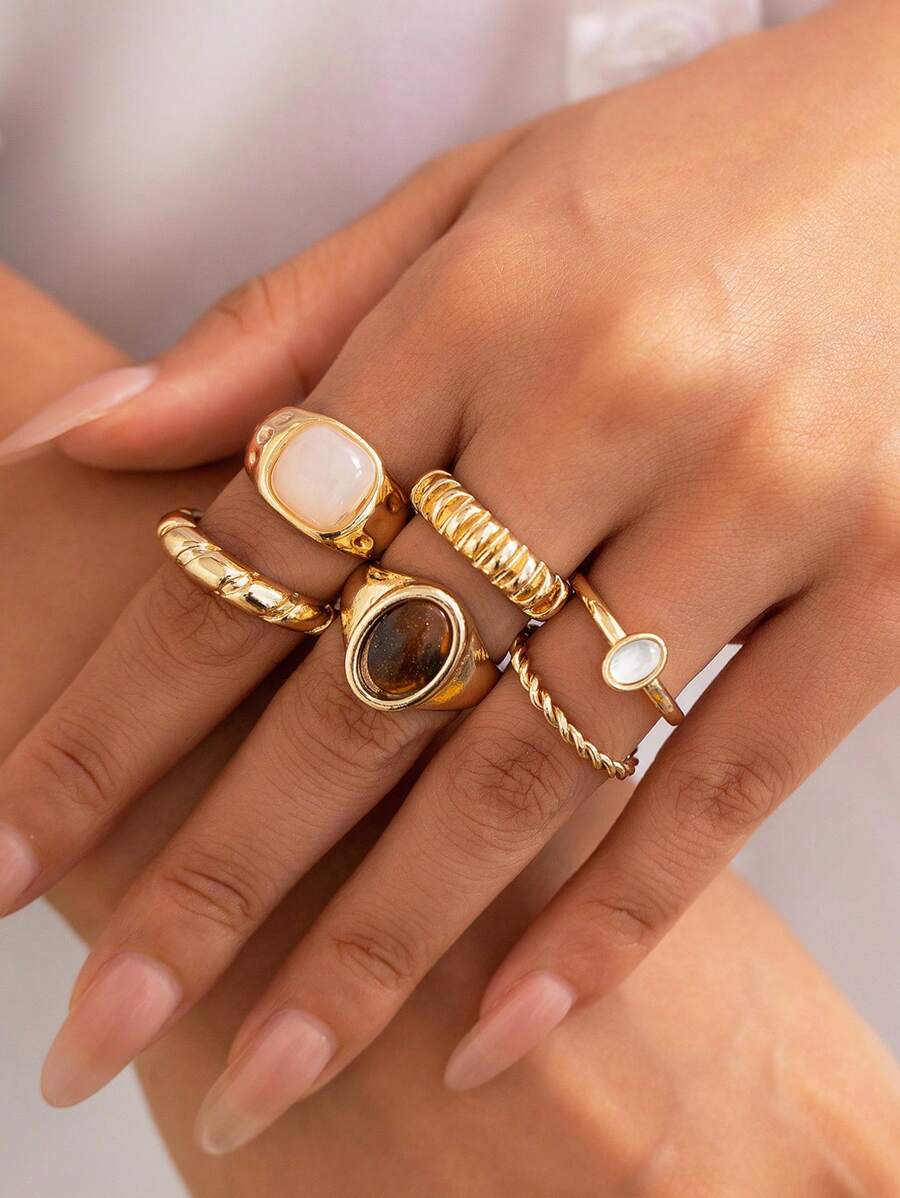 Set da 6 anelli chunky in stile boho retro, multistrato, con strass in vetro, set di gioielli per donna, adatto per uso quotidiano e decorazione da vacanza, regalo ideale per amici