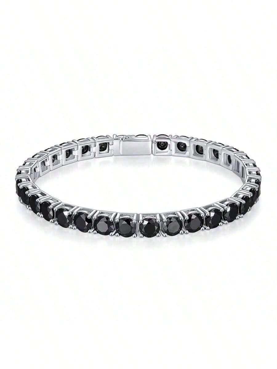 1 pezzo bracciale stile hip-hop classico con 4 artigli e cerchio pieno da 4,0 mm in moissanite nera, adatto come regalo di coppia